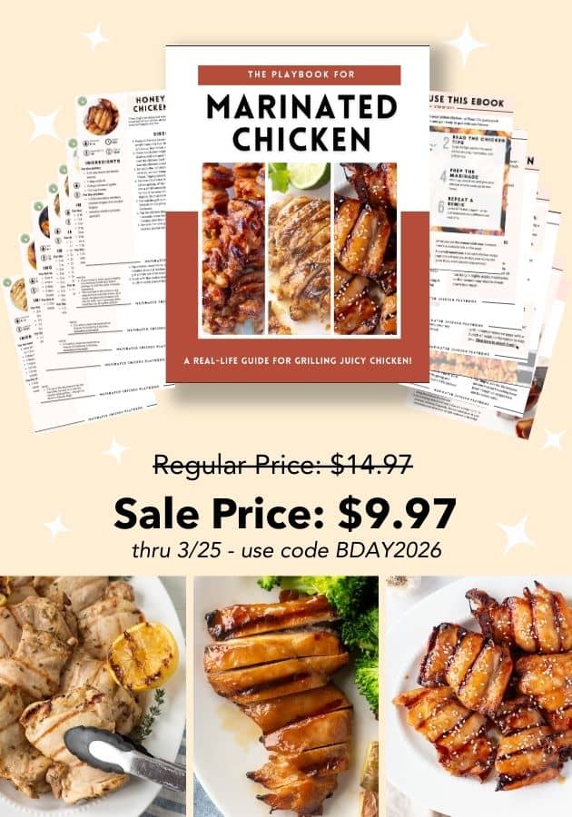 Get the shortcut to juicy, done-right results – with simple marinades, foolproof temps, and real-life instructions in the Playbook for Marinated Chicken!
